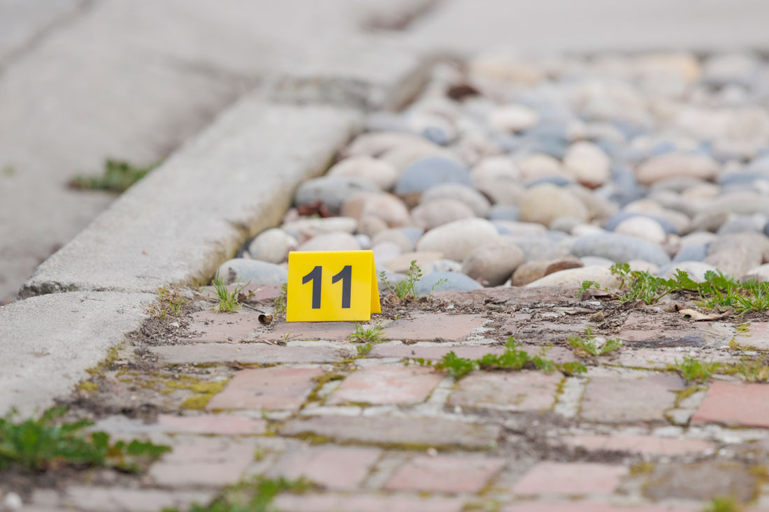 Investigators marked numerous spent shell casings as evidence on Westside Boulevard Jan. 21. Photo: Chris Mora