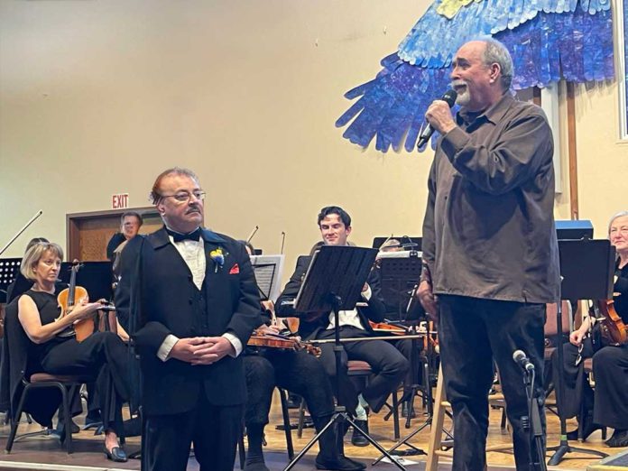 After a few acknowledgements they introduced Fenny and asked him to come up to the stage. Then the conductor came out and he spoke of Marty’s love for classical music and how he was able to intertwine that with his love for journalism. Fenny handed the package and asked him to open it.