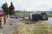 At 9:05 a.m., a tractor trailer traveling west on Pacheco Pass flipped onto its side on the shoulder of the road after making a sharp left turn to stay on the highway near the beginning of Ferguson Road, according to the California Highway Patrol. The crash occurred about two miles east of Gilroy.