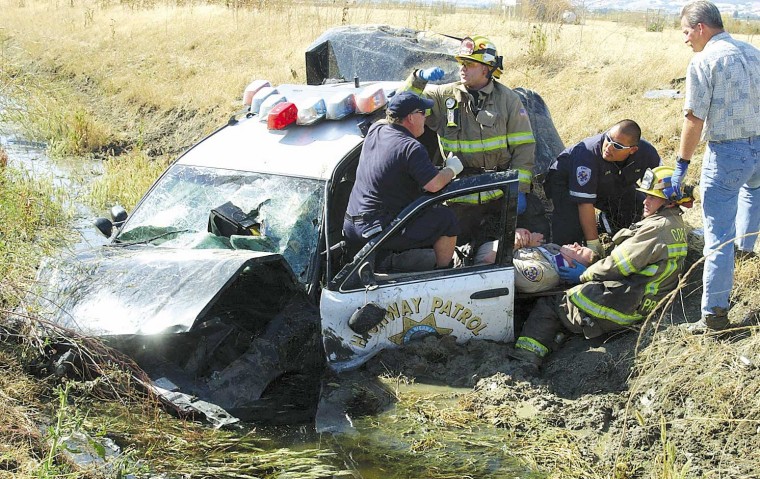 “When I hear an officer is involved in a rollover and I get here and he is trapped in the vehicle, my heart’s dying. It’s real hard,” CHP Capt. Bob Davies said. “Until I can climb over the fence and get down there to talk to him face-to-face and see that he’s OK, it’s difficult.”
