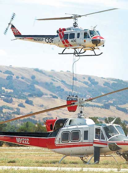Personnel battling the blaze stationed at Christmas Hill Park. All eight helicopters and fighting the flames are using the South County Airport in San Martin as a base.