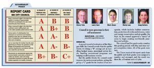 Members of the Times Editorial Board, who are spearheading the evaluation all year long as part of the newspaper’s Accountability in Community Leadership Project, agree with the council and somewhat with the public, giving the group a B, B-plus and two A-minuses on the financial goals and a B-minus on the environmental goal.