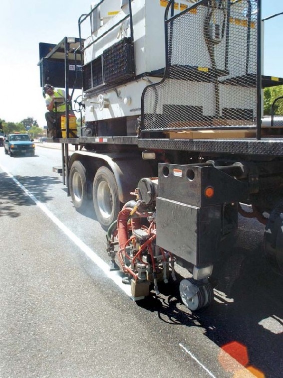 The city completed a restriping project last week, making each of the four lanes through downtown more narrow in an attempt to slow motorists.