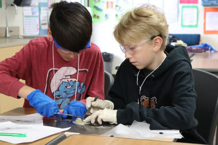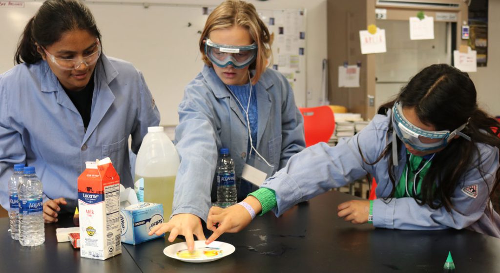 Middle school students participate in a hands-on chemistry activity during the Science Alive program at Gavilan College. Photo: Courtesy of Gavilan College