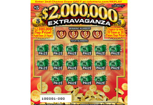 The “$2,000,000 Extravaganza” Scratchers ticket costs $5 and offers 15 $2 million prizes, which are paid out over 25 years. Tickets are available at more than 21,000 Lottery retailers throughout the state. That particular game just debuted last month and two of the 15 prizes have been claimed, Kell said.