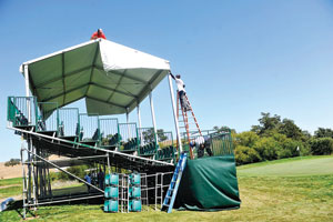 As for CordeValle’s 7,169-yard championship course, the front and back nines will be swapped once again, with minor changes done to the bunkers and rough. Fairways should be fast and firm, Knight said. Workers began installing skyboxes and grandstands two weeks ago.