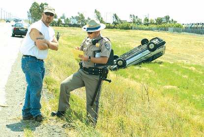 “Supposedly the driver (of the Camry) got out of his vehicle visibly upset, mumbling and cursing to himself, and grabbed a black duffle bag from the trunk,” said David Singer, a California Highway Patrol officer. “Then he jumped in (Smith’s) truck and took off. … You don’t see that very often.”
