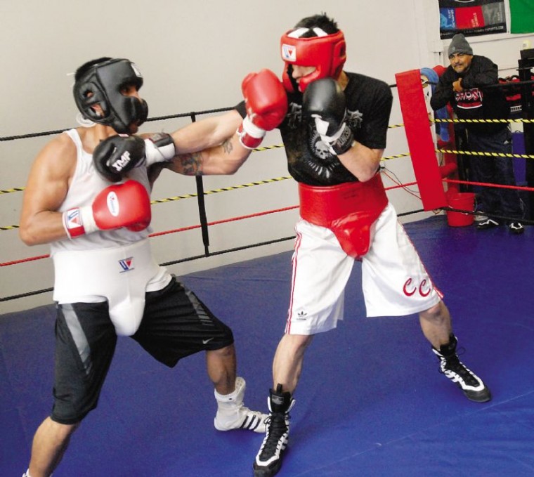 Robert "The Ghost" Guerrero spars with Clint Coronel, from San