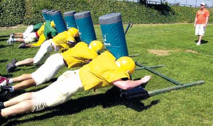 The Live Oak varsity football team began it’s two-a-day practices this week. About 50 varsity players turned out.