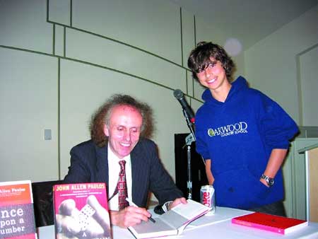 Author John Allen Paulos signs a book for “Math Counts” student,