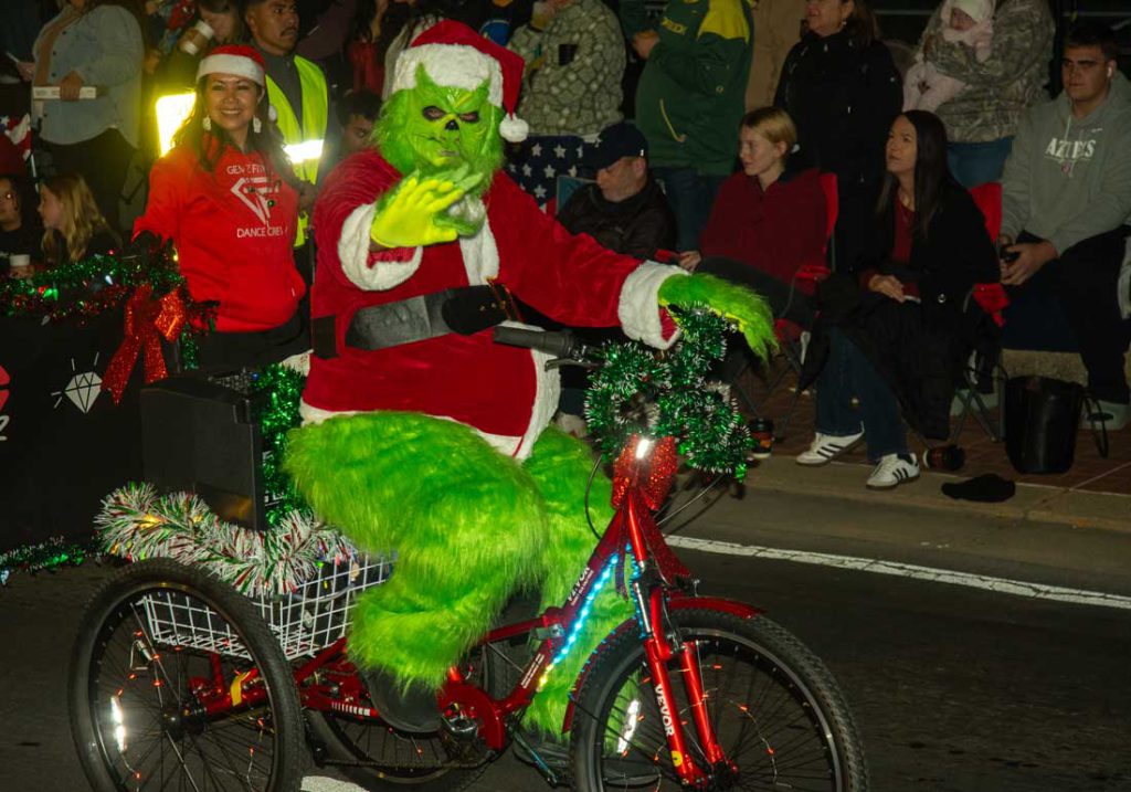 The hour-long parade offered attendees a view of myriad facets of life in the local community. Firefighters and police waved to the crowds as marching bands from both Live Oak and Sobrato High Schools filled the night with music. Dancers and martial arts students from local studios performed acrobatic stunts in the streets while cast in the multicolored brilliance of Christmas lights that line the downtown strip.