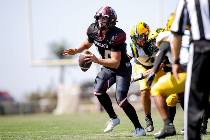 Local heroes included Sobrato quarterback Brayden Hughes who opened the South scoring with a long touchdown pass to Santa Teresa’s Prince Collins. Fellow Bulldog Jacob Sorrentino had a stellar performance, catching five passes for 83 yards.