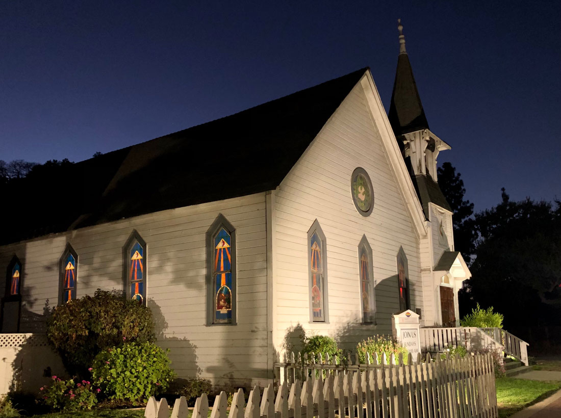 The church, known in 1893 as the Morgan Hill Methodist Episcopal Church, was the first church in the new town. During that first year, the building located on Monterey Road in downtown, was shared by a group of Baptists and also served as a public school.