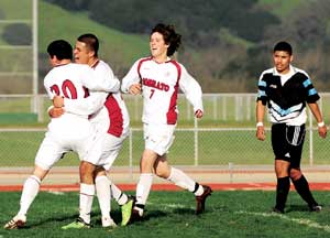 After a scoreless first half, Shawn Henner gave Sobrato a 1-0 lead when he headed home a rebound shot by Franco in the 50th minute. Henner set up the score with a cross to Franco, who fired directly at the Falcons’ goalkeeper from 15 yards out. The ball caromed high away from the keeper, and Henner tapped it into the net.