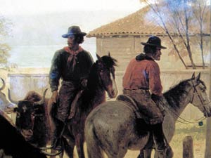 The hardest workers on Californio ranchos, such as the one owned by Juan Maria Hernandez, were the “vaqueros.” Usually, they were Native Americans who worked as herdsmen. Although Spanish colonial law forbade Indians from riding horses, many mission padres winked at the rule and taught the natives how to ride to work the livestock.