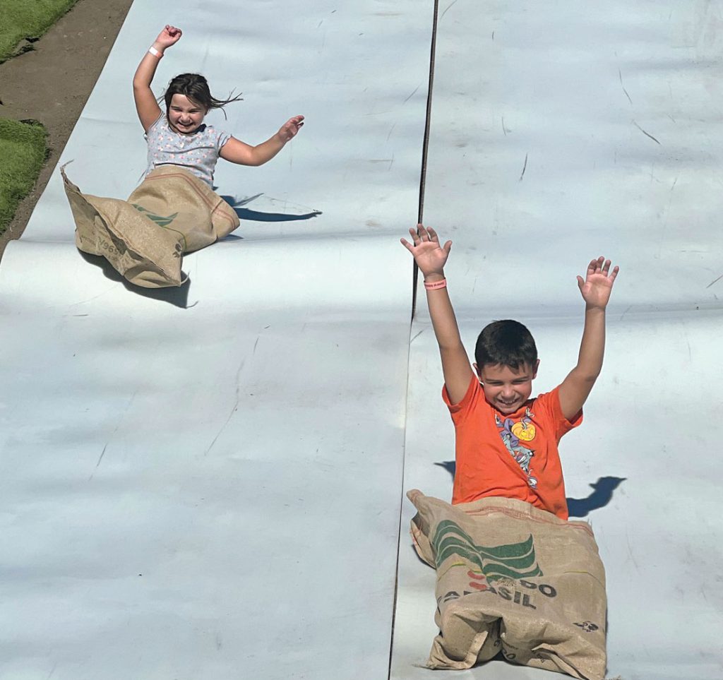 The siblings tried it at least three times before heading for the nearby inflatable slide.
