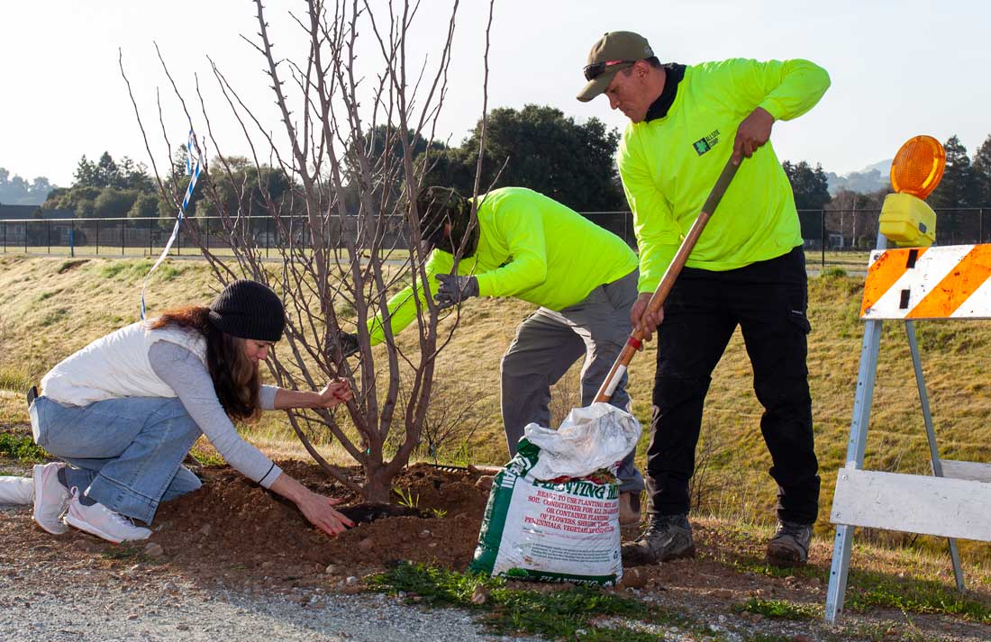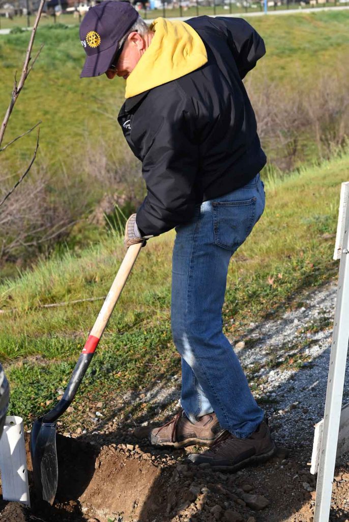 The Rotary Club of Morgan Hill hosted and sponsored a community tree planting project on Jan. 31. Rotary members, joined by volunteers and South County officials, planted young trees on the West Little Llagas Creek Trail between Watsonville Road and Middle Avenue. Pictured below, Morgan Hill Mayor Mark Turner digs a hole for a new tree during the event. Pictured above, other volunteers are pictured filling dirt around the roots of a freshly planted tree.Â