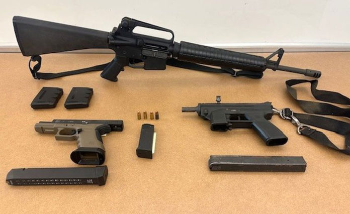 While serving the arrest warrants, officers located and seized stolen and illegal firearms, plus ammunition, at the suspects’ homes, police said.