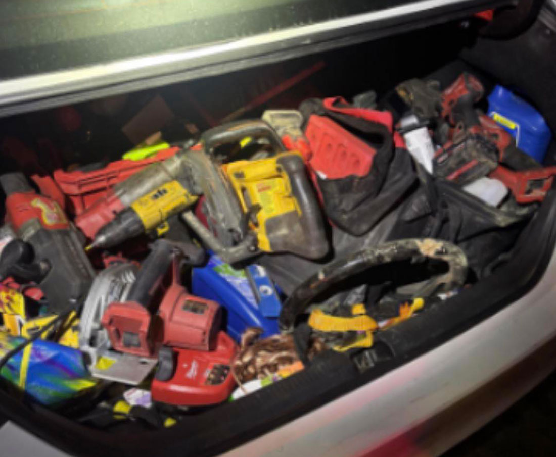 Morgan Hill Police released this photo of a trunk full of tools after officers arrested two people on suspicion of theft on March 26. Contributed photo